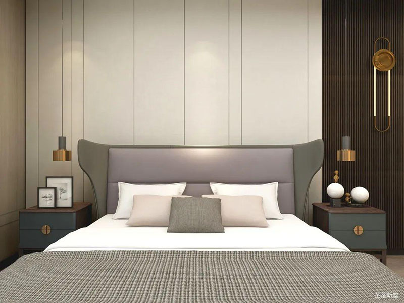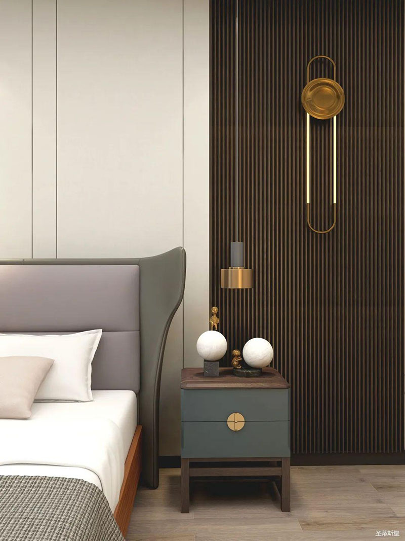 臥室精簡(jiǎn)有致,從質(zhì)感出發(fā),打造由內(nèi)而外的優(yōu)雅奢華感。背景墻、地板、地毯均擁有較強(qiáng)的肌理感,在加上金屬軟裝飾物調(diào)和,讓空間在低調(diào)內(nèi)斂的基礎(chǔ)上又不失時(shí)尚的高級(jí)感,飄窗進(jìn)階為溫馨的一角,閑暇時(shí),則可倚窗而坐,品一杯紅酒,感受生活中的愜意時(shí)光。